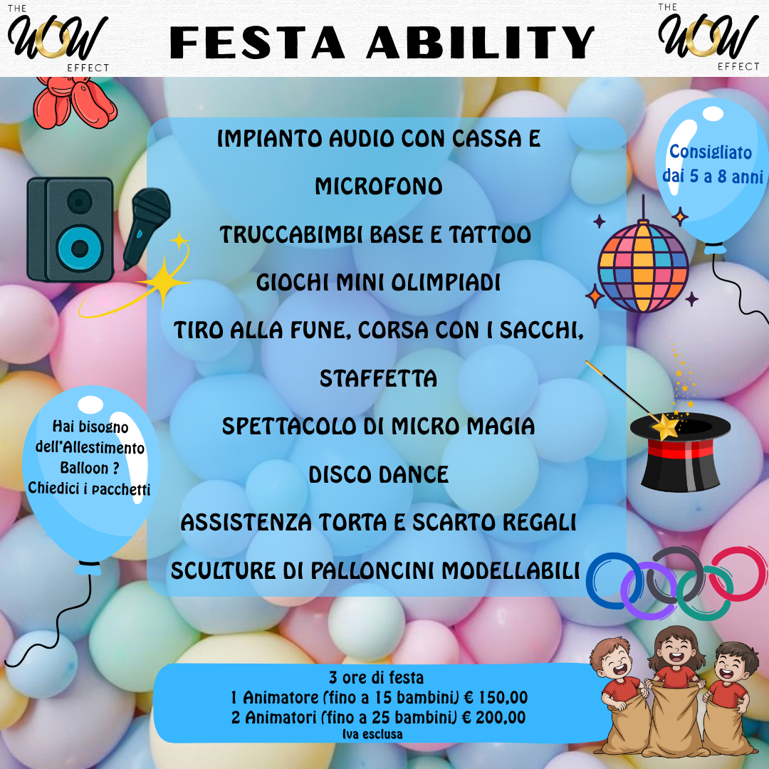 Affidandoti alla nostra professionalità e scegliendo The Wow Effect avrai garanzia di professionalità ed eventi riusciti. La nostra animazione per feste a Roma è caratterizzata dall’attenzione per i dettagli, creatività negli allestimenti e competenza nella gestione del pubblico dell’evento.